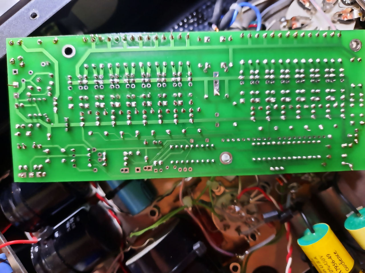 Un grand merci à tous nos clients - qu'ils soient professionnels ou particuliers - pour leurs demandes variées, leur retour spontané et la reconnaissance de notre service. Cordialement et musicalement vôtre ! Préamplificateur deHAVILLAND MERCURY III, tubes 5AW4 RCA, 85 TUNG-SOL, 6BL7G GE : révision complète, tests tubes sur lampemètre Métrix, remplacement des relais de commutation défectueux par modèles haute fiabilité, contacts Ag-Au, >100000 manoeuvres. Reprise des soudures à l'argent sur le ciruit imprimé. Nettoyage, défluxage et inspection visuelle finale suivant norme IPC-A-610. Tests audio finaux avec vérification de bon fonctionnement roue codeuse - relais. Burn-in (déverminage) : 2 heures.